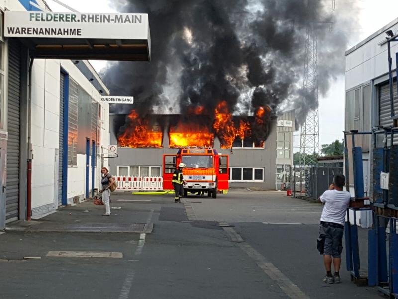 Mörfelden-Walldorf – Gegen 19 Uhr am Dienstag wurden die Feuerwehren Mörfelden-Walldorf in den Hessenring ins Gewerbegebiet alarmiert. Die Rauchsäule, welche noch aus dem 20 Kilometer entfernten Mainz sichtbar war, wies den Einsatzkräften den Weg.
