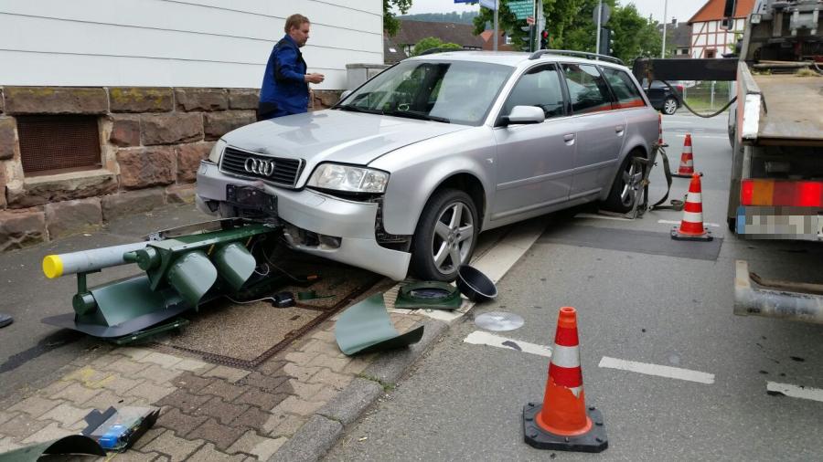 Die Polizeistreife wollte das Fahrzeug kontrollieren. Danach gab der Fahrer Gas. Mit sehr hoher Geschwindigkeit teilweise mit bis zu 200 km/h lenkte der Fahrer das Fahrzeug teilweise über die Standspur und konnte so die Autobahn verlassen. Da die Polizisten das Fahrzeug nicht ohne Gefährdung anderer Verkehrsteilnehmer stoppen konnten, verloren sie es kurzzeitig aus den Augen. Wie sich schnell herausstellte, war der Fahrer an der Anschlussstelle Zierenberg abgefahren und flüchtete über die B251 in Fahrtrichtung Kassel. In Habichtswald-Ehlen endete die Fahrt dann an einer Verkehrsampel, als der flüchtige Fahrer in einer Kurve die Kontrolle über das Fahrzeug verlor. Beim Eintreffen der Polizei war lag die komplette Lichtzeichenanlage teilweise unter dem gestohlenen Audi A6. Von den Insassen, zwei südländisch wirkenden Personen fehlt jede Spur. Wie die bisherigen Ermittlungen ergaben, war der Audi A 6 am 4.4.2016 in Bad Hersfeld gestohlen und bereits zur Fahndung ausgeschrieben worden.