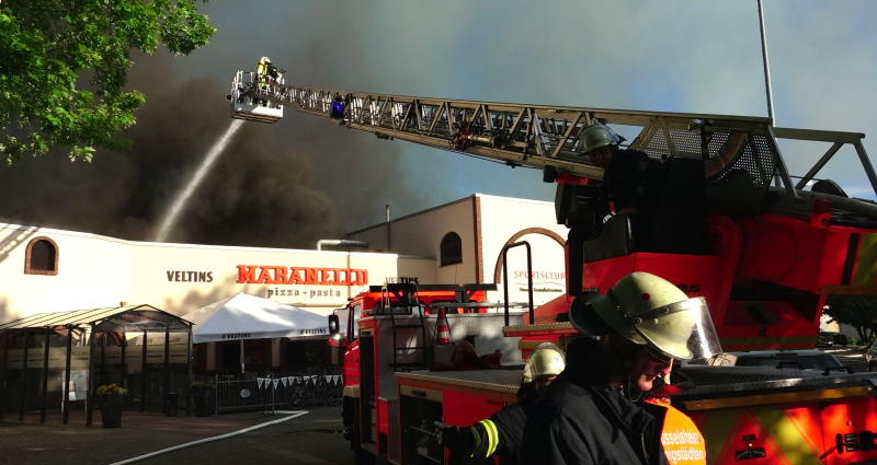 Rüsselsheim – Nach dem Großbrand einer Tennis- und Soccerhalle in der Straße Karlsbader Straße in Rüsselsheim am Mittwochabend, bei der nach ersten Schätzungen mehrere Millionen Euro Schaden entstanden sind gehen die Ermittler der Kriminalpolizei nach derzeitigem Erkenntnisstand und nach Begutachtung des Brandorts am Donnerstag von einem technischen Defekt als Brandursache aus. Vorbehaltlich noch ausstehender technischer Untersuchungen deuten die Ermittlungen der Brandexperten sowie die Befragung von Zeugen derzeit auf einen elektrischen Defekt als Auslöser des Brandes hin. Die Flammen haben auf ein angebautes Gebäude mit Wohnungen übergegriffen. Zahlreiche Schaulustige waren im Nahbereich des Brandortes und behinderten die Löscharbeiten. Erst gegen 21.45 Uhr war das Feuer unter Kontrolle. Die Nachlöscharbeiten dauerten bis in die Nacht an. Insgesamt waren 263 Einsatzkräften vor Ort im Einsatz.