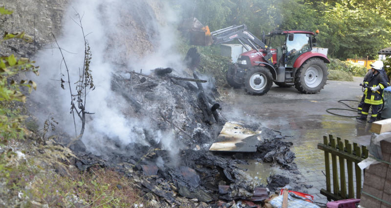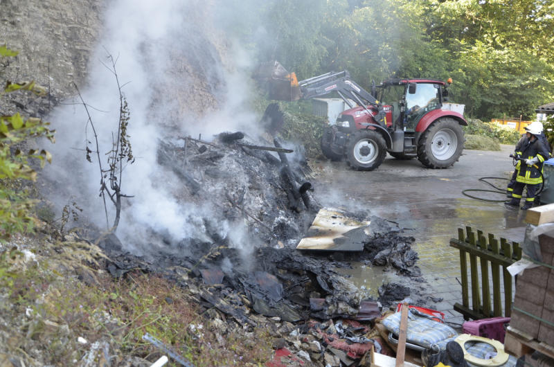 Holz und diverses Abfallmaterial brannten bei Ankunft der Brandschützer auf einer Fläche von rund 15 Quadratmeter. Einsatzleiter Ralf Debus ließ die Flammen mit einer Schnellangriffsvorrichtung ablöschen, so dass das Feuer schnell unter Kontrolle war. Die Jesberger Feuerwehren waren mit insgesamt 15 Brandschützer vor Ort. Da es sich um Abfall handelte, dürfte der Schaden bei null Euro liegen.