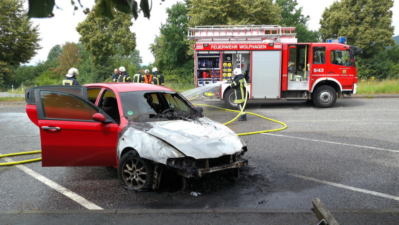 Sofort wurde die Feuerwehr alarmiert, jedoch erlitt der Wagen einen Totalschaden. Noch vor dem Eintreffend der Feuerwehr konnten die Eigentümer die wichtigsten Sachen aus dem Kofferraum retten. Verletzt wurde bei dem Brand niemand. Zum Einsatz kam die Feuerwehr Istha und Wolfhagen mit insgesamt 25 Einsatzkräften. Nach rund einer Stunde war der Einsatz beendet.