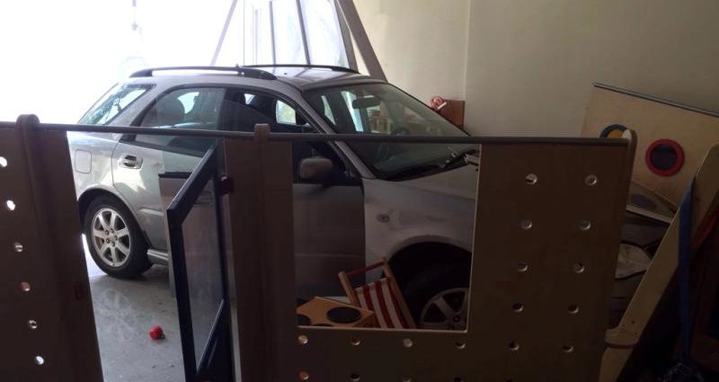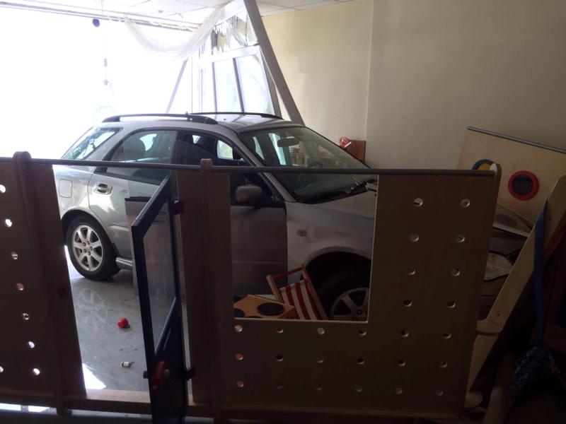 Sie überfuhr in der Folge den Grünstreifen des Kinderzentrums Weißer Stein bis direkt in einen glücklicherweise zu dieser Zeit leeren Gruppenspielraum. Die Kinder, die normalerweise diesen Raum nutzen, spielten zur Unfallzeit im Garten. Die 86-Jährige blieb unverletzt. Am Auto, sowie am Gebäude und einer Garage entstanden ein Schäden von über 50.000 Euro.