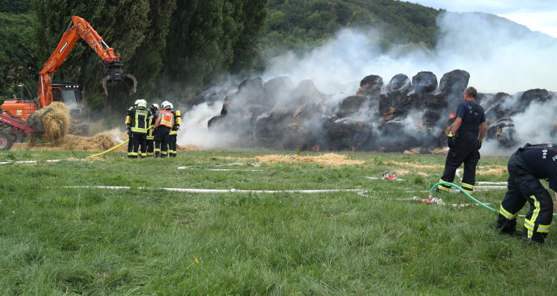 Habichtswald – Am Montagvormittag wurden die Ortsfeuerwehren rund um Habichswald-Dörnberg alarmiert. Auf einem Feld waren rund 220 Heuballen in Brand geraten. Beim Eintreffen der Feuerwehr standen die Rundballen bereits im Vollbrand. Die Einsatzkräfte konnten drei davor stehende Anhänger gerade noch in Sicherheit bringen.