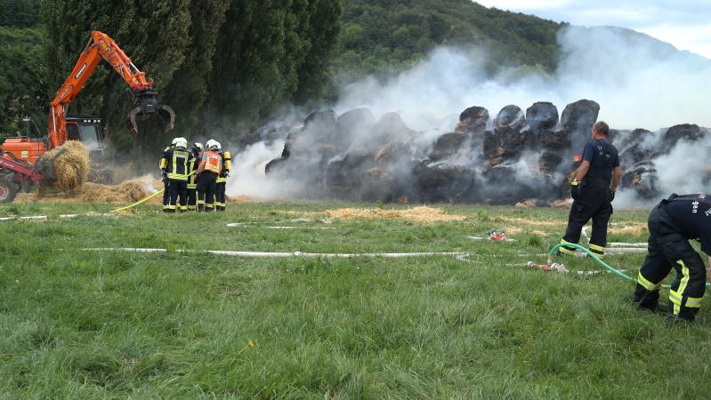 Probleme mit der Löschwasserversorgung gab es nicht, zum einen konnten in der näheren Umgebung zwei Hydranten genutzt werden, zum anderen stand Wasser aus einem nahe gelegenen Bach zu Verfügung. Die Heuballen mussten mit zwei Baggern auseinander gezogen und abgelöscht werden. Hierbei handelt es sich um eine sehr aufwendige Arbeit, die sich über mehrere Stunden hinzog. Die Bewohner wurden aufgrund der starken Rauchentwicklung zeitweise dazu angehalten, Fenster und Türen geschlossen zu halten.