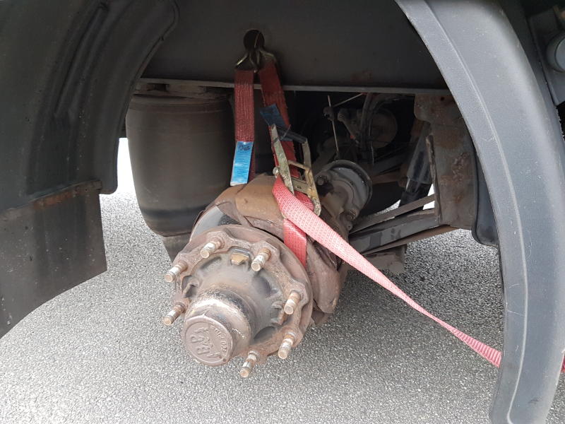 Der Fahrer war mit seinem völlig verkehrsuntauglichen Lkw-Anhänger-Gespann offenbar von Slowenien bis nach Baunatal gefahren. Wie die Beamten berichten, war vermutlich der Defekt an einem Hauptbremszylinder des Anhängers Auslöser für das gefährliche Unternehmen des 62-jährigen Fahrers. Die Bremsscheiben hatten blockiert, weshalb er eigenen Angaben zu Folge noch in Slowenien das Rad kurzer Hand abmontierte und es auf den Anhänger auflud. Um den Abstand der dem Erdboden bedrohlich nahekommenden Blattfedern zu reduzieren, hatte er die Radaufhängung mit einem Spanngurt festgezurrt und so versucht, sie anzuheben. Ein Kontakt der Aufhängung mit der Fahrbahn bei einer Bodenwelle hätte nach Ansicht der Beamten zu einer erheblichen Verkehrsgefährdung geführt. Auch die Fahreigenschaften des Gespanns sowie die Bremswirkung waren durch das fehlende Rad stark eingeschränkt.