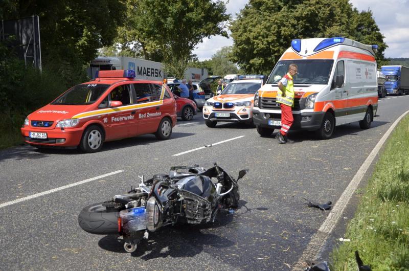 Nach ersten Erkenntnissen befuhr ein 61-jähriger Mann aus Lahntal mit seinem PKW die Bundesstraße 3 in Richtung Kassel. In Höhe der Gemarkung Bad Zwesten wollte dieser vermutlich nach links auf einen Parkplatz auffahren und übersah vermutlich den aus Richtung Borken kommenden 42-jährigen Motorradfahrer aus Edertal. Durch den Zusammenprall erlitt der Edertaler lebensbedrohliche Verletzungen. Die Besatzungen zweier Rettungswagen, der Notarzt aus Fritzlar sowie die Besatzung des Rettungshubschraubers Christoph 7 eilten zur Unfallstelle. Dennoch kam für den Zweiradfahrer jede Hilfe zu spät. Er verstarb noch an der Unfallstelle. Die Bundesstraße war für mehrere Stunden voll gesperrt. Ein Gutachter wurde zur Klärung des Unfallhergangs an die Unfallstelle gerufen.