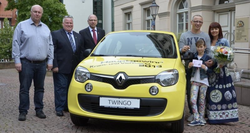 Bad Wildungen – Elena und Alexander Schaschkow sind die Hauptgewinner der Bad Wildunger Viehmarktslotterie. Ihr Gewinn: Ein knallgelber, nagelneuer Renault Twingo im Wert von 11500 Euro aus dem Autohaus Seibel.