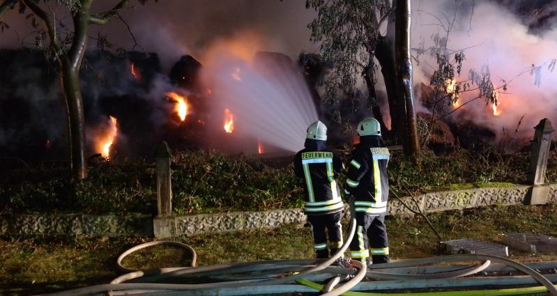 Grifte – In der Nacht auf Sonntag brannten in Edermünder Ortsteil Grifte rund 350 Rundballen. Als die ersten Einsatzkräfte gegen 01.45 Uhr in der Guxhagener Straße eintrafen, brannte bereits ein größerer Teil.