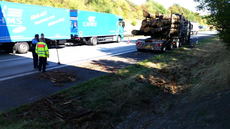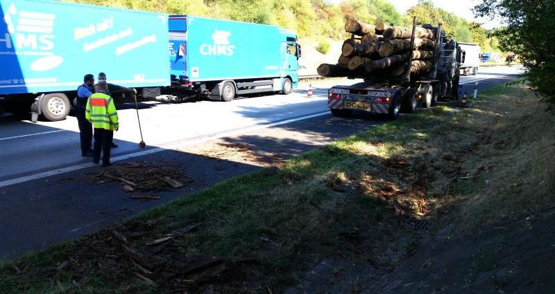 Der Fahrer der bei dem Unfall unverletzt blieb, konnte mit dem Kran der am LKW montiert ist, den Anhänger wieder richten und die Holzstämme aufladen. Danach konnte er die Fahrt wieder fortsetzen. Bevor der Lkw jedoch seine Fahrt in Richtung Sägewerk fortsetzte, führte der erste Weg zum Baunataler VW Werk. Dort steht eine Waage bereit, auf der die an der Unfallstelle eingesetzten Autobahnpolizisten auf der Suche nach der Unfallursache das Gewicht des Transporters feststellen ließen. Dabei stellte sich zu Gunsten des 45 Jahre alten Fahrers aus Reinhardshagen und des Transporteurs heraus, dass alles vorschriftsmäßig war. Rund 37 Tonnen wog der Gesamttransport und war damit im erlaubten Soll. Die Polizei kann derzeit nicht abschließend sagen, warum der Transporter seine Ladung verlor. Möglicherweise hob eine Bodenwelle den sogenannten Nachläufer aus, woraufhin das geladene Langholz auf die Fahrbahn rutschte. Am Fahrzeug entstand kein Sachschaden. Lediglich an der Fahrbahndecke entstand infolge des Aufschlags des Langholzes Sachschaden. Nachdem die Fahrbahn von der Autobahnmeisterrei gesäubert wurde, war die Unfallstelle gegen 15 Uhr geräumt.
