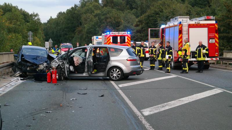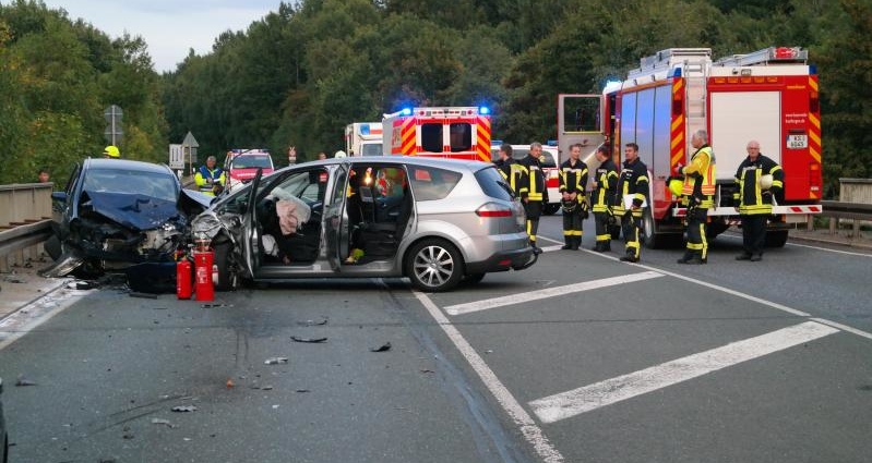 Bei dem Unfall wurden insgesamt acht Personen zum Teil schwer verletzt, darunter befand sich auch der 4-jährige Sohn und die neun Monate alte Tochter des Unfallfahrers. Wie Hessennews aus unbestätigter Quelle erfahren hat, war ein Insasse nicht angeschnallt. Alle Verletzten wurden nach einer Erstversorgung an der Unfallstelle in umliegende Krankenhäuser eingeliefert. Nach letzten Informationen wurde niemand lebensbedrohlich verletzt. Die Feuerwehr betonte ausdrücklich, dass sehr viele Ersthelfer vor Ort waren und die Verletzten betreut und aus den Fahrzeugen befreit haben. Teilweise wurden eigene Fahrzeuge zur Verfügung gestellt, um die Verletzten bis zum Eintreffen der Rettungskräfte gut versorgen zu können. Hier wurde alles richtig gemacht. Die Polizei hatte allerdings zu bemängeln das drei Fahrzeugführer, die mehr als gut sichtbare Absperrung ignorierten und durch die Unfallstelle fahren mussten. Ein Fahrzeugführer konnte noch gestoppt und klar gemacht werden, dass es sich hier um eine Unfallstelle handelt und die Absperrung nicht umsonst aufgebaut wurde. Ob hier ein Verwarngeld ausgesprochen wurde war nicht zu erfahren. Zum Einsatz kam die Feuerwehr Kaufungen und Helsa mit insgesamt 21 Einsatzkräften. Zusätzlich waren sieben RTW, zwei NEF, LNA und OLRD an der Unfallstelle eingesetzt. Um die genaue Unfallursache klären zu können, wurde ein Gutachter in die Ermittlungen eingebunden. Die B7 war während der Unfallaufnahme komplett gesperrt.