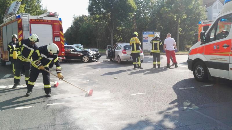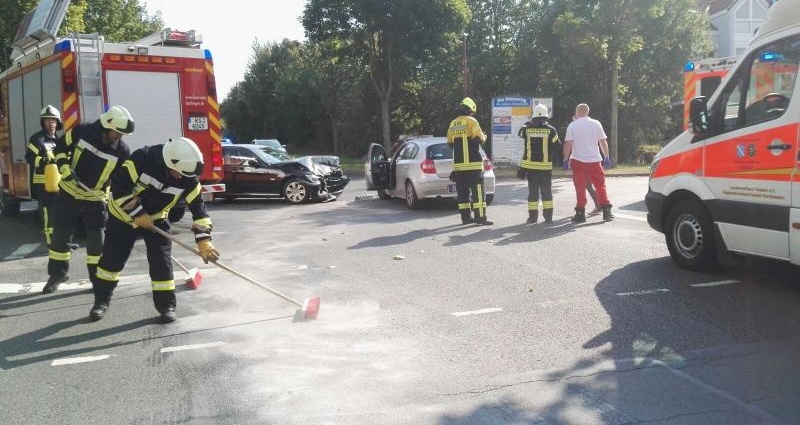 Bei dem Unfall wurden zwei Personen verletzt und mussten nach einer Erstversorgung an der Unfallstelle in ein Krankenhaus eingeliefert werden. Gegen 14.45 Uhr wurde die Feuerwehr Kaufungen alarmiert, um die die Einsatzstelle abzusichern und ausgelaufene Betriebsstoffe aufzunehmen. Der Kreuzungsbereich musste zeitweise voll gesperrt werden. Während des Einsatzes kam es noch zu einem Folgeeinsatz für die Brandschützer. Im Kaufunger Wald gab es einen Kleinbrand, der von den Kameraden und Kameradinnen mit zwei Kübelspritzen schnell gelöscht werden konnte.