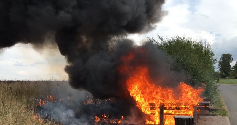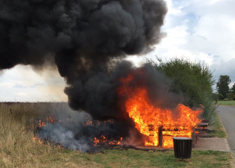 Als er erkannte was hier brannte, informierte er die Feuerwehr. Gegen 13.20 Uhr wurde die Feuerwehr Niestetal mit dem Alarmstichwort „Kleinbrand“ alarmiert. Bei Ankunft brannten zwei Parkbänke, ein Tisch sowie rund 30 qm² Hecke und Feld. Die Feuerwehr setzte Schaum ein um den Brand schnell löschen zu können. Der Einsatz für die ca. 15 Einsatzkräfte war nach rund einer Stunde beendet. Da man von einer Brandstiftung ausgeht, werden jetzt Zeugen gesucht, die etwas Verdächtiges gesehen haben. Wer glaubt etwas gesehen zu haben, meldet sich bitte bei der Polizei Kassel unter 0561 9100.