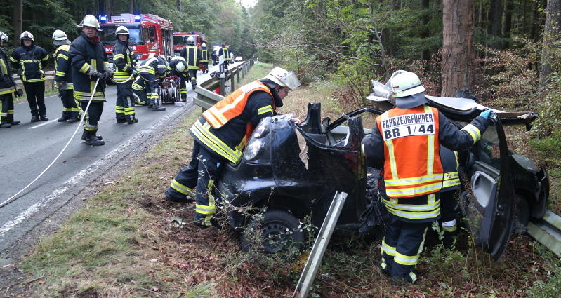 Breuna – Zu einem Alleinunfall kam es am Samstagmittag gegen 13.40 Uhr auf der L3080 zwischen Breuna und Oberlistingen. Eine Frau befuhr die Landstrasse mit Ihrem PKW und verlor aus bisher noch nicht geklärter Ursache die Kontrolle über Ihr Fahrzeug, kam von der Fahrbahn ab und kracht gegen eine Leitblanke. Durch die Wucht des Aufpralls wurde die Frau im Fahrzeug eingeklemmt und musste von der Feuerwehr mit schwerem Gerät befreit werden. Im Rahmen einer „Patienten schonenden Rettung“ konnte die Frau sehr schnell aus dem Wrack befreit werden. Nach einer Erstversorgung an der Unfallstelle wurde sie mit schweren Verletzungen in eine Krankenhaus eingeliefert. Neben der Feuerwehr Breuna und Ortsteilen die mit 30 Kameraden und Kameradinnen im Einsatz waren, flog der Rettungshubschrauber Christoph 7 den Notarzt zur Einsatzstelle. Die Landesstraße war bis ca. 15 Uhr voll gesperrt.