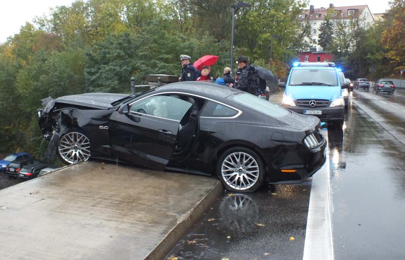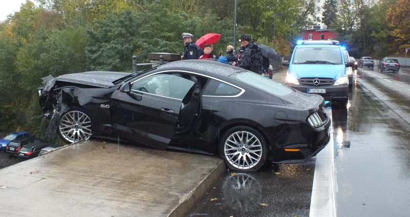 Die drei Insassen des verunfallten Pkw wurden leicht verletzt. Sowohl der Fahrer, eine 40-Jähriger aus Kassel, als auch die beiden im Auto sitzenden zehn und elf Jahre alten Kinder wurden vorsorglich mit Rettungswagen in ein Kasseler Krankenhaus gebracht. Wie die Polizei berichtet, ist der Unfall relativ glimpflich ausgegangen. Der 40-Jährige war mit einem Ford Mustang über den Gehweg in das Brückengeländer und eine dortige Laterne gekracht, wodurch das Metallgeländer und große Betonteile aus dem Brückenfundament mehrere Meter in die Tiefe auf die Mombachstraße stürzten. Dort hatten sich zu diesem Zeitpunkt glücklicherweise keine Personen oder Autos aufgehalten. Der Ford kam quer auf dem Gehweg, mit der Fahrzeugfront bereits über den Brückenrand ragend, zum Stehen. Die drei Insassen hatten den Wagen anschließend eigenständig verlassen können. Nach ersten Schätzungen der Beamten war an dem Pkw ein Schaden von rund 40.000 Euro entstanden. Der Schaden an der Brücke beläuft sich nach ersten vorsichtigen Schätzungen von Mitarbeitern der Stadt Kassel auf etwa 100.000 Euro. Den bisherigen Ermittlungen zum Unfallhergang zufolge, war der 40-Jährige von der Witzenhäuser Straße gekommen und hatte an der Einmündung zur Wolfhager Straße in Richtung der Brücke über die Mombachstraße zunächst an der roten Ampel gewartet. Als diese schließlich Grün zeigte, fuhr er mit seinem Ford an und kam dabei aufgrund eines Fahrfehlers ins Schleudern. Dadurch kam der Wagen nach links von der Straße ab und krachte gegen das Brückengeländer. Bis zur Bergung des Ford Mustang gegen 13 Uhr kam es im Bereich der Brücke aufgrund einspuriger Verkehrsführung zu Behinderungen. Zur Absicherung des beschädigten Brückengeländers verständigten die Polizei von der Unfallstelle aus die Stadt Kassel.