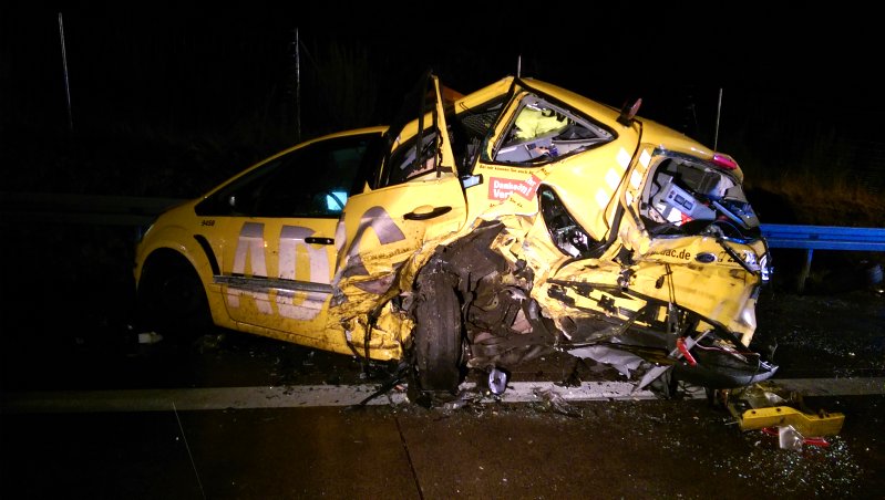 Nach jetzigem Stand der Ermittlungen erreichte unmittelbar danach ein „Gelber Engel“ des ADAC die Unfallstelle. Der 55 jährige Fahrer des ADAC Fahrzeuges aus dem Landkreis Hersfeld/Rotenburg hielt seinen Wagen an um das verunfallte Fahrzeug abzusichern und Erste Hilfe zu leisten. Ein 42 jähriger Mercedes Fahrer aus Chemnitz näherte sich der Gefahrenstelle, übersah das absichernde ADAC-Fahrzeug und fuhr mit hoher Geschwindigkeit in dessen Heck. Der Fahrer des ADAC Fahrzeuges erlitt in seinem Pkw lebensgefährliche Verletzungen. Der Fahrer des auffahrenden Pkw wurde leicht verletzt. Durch die Feuerwehren aus Bad Hersfeld und Sorga erfolgte die Rettung des Verletzten sowie Absicherung und Reinigung der Unfallstelle. Zur Rekonstruktion des Unfallgeschehens wurde ein Gutachter bestellt. Die A 4 war für die Dauer der Rettungsmaßnahmen und Sicherung von Unfallspuren für rund zwei Stunden voll gesperrt. Es bildete sich ein Stau von 7 km Länge.