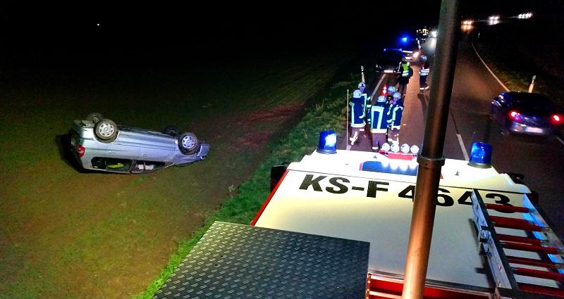 Bei Ankunft stellte sich schnell heraus, dass es lediglich zu einer Verrauchung in einem Hauswirtschaftsraum gekommen war. Möglicherweise war dies auf einen Defekt in einer Heizungsanlage zurückzuführen. Alle erforderlichen Maßnahmen waren gegen 16:30 Uhr abgearbeitet. Verletzt wurde niemand. Etwa eine Stunde später gegen 17.42 Uhr der nächste Einsatz. Auf der B450 kam es zwischen Balhorn und Istha zu einem Unfall mit einem beteiligten PKW. Bei Eintreffen der Feuerwehr lag ein Fahrzeug auf dem Dach in dem sich die Fahrerin noch befand. Mit Hilfe eines Spineboards konnte die leicht verletzte Frau über den Kofferraum aus dem Fahrzeug befreit werden. Vorab musste die Feuerwehr das Fahrzeug stabilisieren. Nach einer ärztlichen Erstversorgung an der Unfallstelle wurde die Frau dann in ein Krankenhaus eingeliefert. Wie es zu dem Unfall kommen konnte, ist derzeit noch unklar. Nach Absprache mit der Polizei sicherte die Feuerwehr die Bundesstrasse ab, richtete die Vollsperrung ein und leuchtete die Unfallstelle aus. An den beiden Einsätzen waren die Feuerwehren Bad Emstal, Merkshausen, Sand und zusätzlich zum Brandeinsatz die Feuerwehr Riede im Einsatz.
