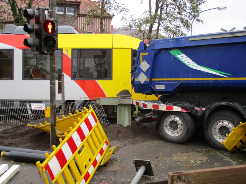 Der Zug war mit 200 Reisenden, zumeist Schüler und Berufspendler besetzt. Sie konnten mit dem Schienenersatzverkehr die Fahrt fortsetzen. Es entstand ein Sachschaden von rund 240.000 Euro. Bundespolizei, Landespolizei, Feuerwehr, Rettungskräfte und der Notfallmanager der Deutschen Bahn AG waren vor Ort. Die Strecke ist aufgrund der Bergungsarbeiten noch bis voraussichtlich 14 Uhr gesperrt. Nach ersten Erkenntnissen wird davon ausgegangen, dass der LKW den Bahnübergang mit der Halbschranke passierte und dahinter parkte, der Sattelauflieger jedoch in das Gleisbett ragte.