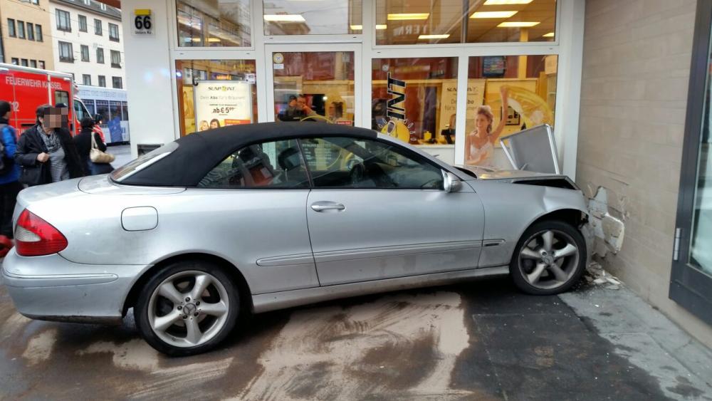 Auch der Fahrer wurde bei dem Unfall verletzt und ebenfalls in eine Krankenhaus eingeliefert. Nach ersten Informationen der Polizei ist der Mann mit seinem Fahrzeug über den Bürgersteig gefahren, hat den Mann erfasst und krachte dann mit seinem Mercedes gegen die Hauswand. Auch ein Werbeaufsteller und die Glasscheibe eines Sonnenstudios ging dabei zu Bruch. Nach ersten Informationen der Polizei soll der Sachschaden auf rund 20.000 Euro geschätzt.