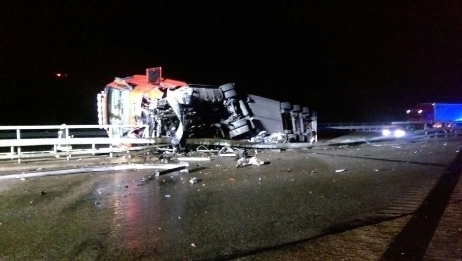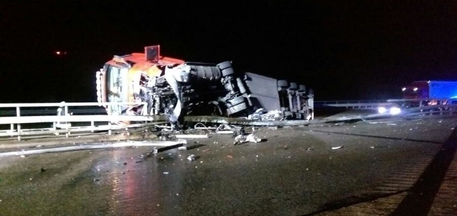 Durch den Aufprall in die Schutzplanke werden Fahrzeugteile auf die Gegenfahrbahn in Richtung Frankfurt geschleudert. Fünf Fahrzeugführer können den umherliegenden Trümmern nicht mehr ausweichen und beschädigen sich dabei die Fahrzeuge. Ein 26 jähriger Pkw Fahrer aus dem Vogelsbergkreis versuchte mit seinem Pkw den umherliegenden Fahrzeugteilen auszuweichen. Dabei kam er mit dem Fahrzeug ins Schleudern, prallte in die Mittelschutzplanke und schleuderte über die Fahrstreifen. Der Fahrer wurde leicht verletzt in ein Krankenhaus eingeliefert. An beiden Unfallstellen liefen Betriebsstoffe aus. Die Fahrbahn musste durch eine Reinigungsmaschine gereinigt werden. Die Bergung des Sattelzuges gestaltete sich schwierig, da auf dem Auflieger Sammelgut geladen war und der Sattelzug sich in der Schutzplanke verkeilt hatte. Insgesamt werden dabei 5 Fahrzeuge beschädigt. Es entsteht ein Gesamtschaden an den Fahrzeugen von ca. 90.000 EUR. An den Autobahneinrichtungen entstand ein Sachschadend von ca. 10.000 EUR. Die Bergungsarbeiten an dem Sattelzug und die damit verbundene Vollsperrung der Fahrspur in Richtung Kassel wird noch bis in die frühen Morgenstunden andauern. Zu deren Beginn wurde für den Verkehr auf der A 5 aus Richtung Frankfurt kommend eine Umleitungsempfehlung über die B 62 gegeben. Im weiteren Verlauf genügte der Verweis für den Verkehr in Richtung Kassel, dass die Verkehrsteilnehmer die Anschlussstelle Niederaula nutzen sollen, um in Richtung Kassel weiterzufahren. Diese Verkehrsführung gestaltete sich problemlos.