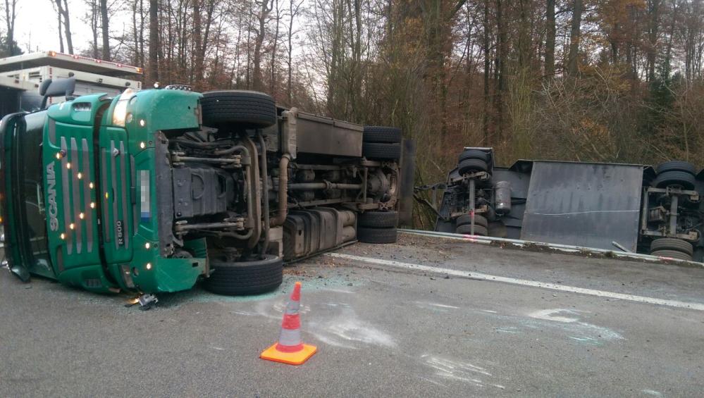 Während der LKW quer zu Fahrbahn zum liegen kam, landete der Anhänger im angrenzenden Graben. Personen wurden nach ersten Erkenntnissen bei dem Unfall nicht verletzt. Im LKW befanden sich allerdings 41 Kälber, 14 Mastbullen und drei Schweine. Über den Zustand der Tiere gibt es aktuell noch keine verlässlichen Informationen. Die Autobahn muss für die sehr aufwendige Bergung vermutlich bis in die Mittagsstunden voll gesperrt werden. Ortskundige Autofahrer werden gebeten das Gebiet weiträumig zu umfahren. Es wird empfohlen die Autobahn an der Anschlussstelle Homberg Ohm zu verlassen und über die U27 den Unfall zu umfahren.