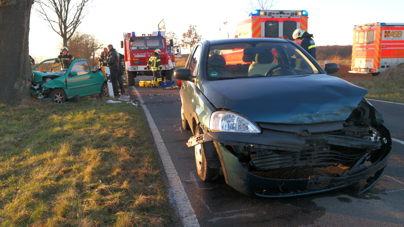 Hierbei übersah sie möglicherweise einen ihr entgegenkommenden PKW und streifte diesen.   Der 20-jährige Fahrer des Fahrzeuges kam hierdurch von der Fahrbahn ab und krachte frontal gegen einen Baum. Der junge Mann wurde in seinem VW-Polo eingeklemmt und musste von der Feuerwehr befreit werden. Nach Absprache mit dem Rettungsdienst wurde der schwer Verletzte im Rahmen einer Patientenschonenden Rettung aus dem Fahrzeug befreit. Hierzu mussten die Kameraden der Feuerwehr das Dach des Fahrzeuges entfernen.  Nach einer Erstversorgung an der Unfallstelle wurde der Mann dann in ein Krankenhaus eingeliefert. Die 85-jährige Unfallfahrerin erlitt einen Schock. Der Rettungsdienst lobte die ruhige und professionelle Zusammenarbeit mit den Kameraden der Feuerwehr Niestetal. Um die genaue Unfallursache feststellen zu können, wurde ein Gutachter in die Ermittlungen einbezogen. Während der gesamten Unfallaufnahme musste die K4 komplett gesperrt werden. Die Feuerwehr war mit insgesamt 18 Einsatzkräften vor Ort.