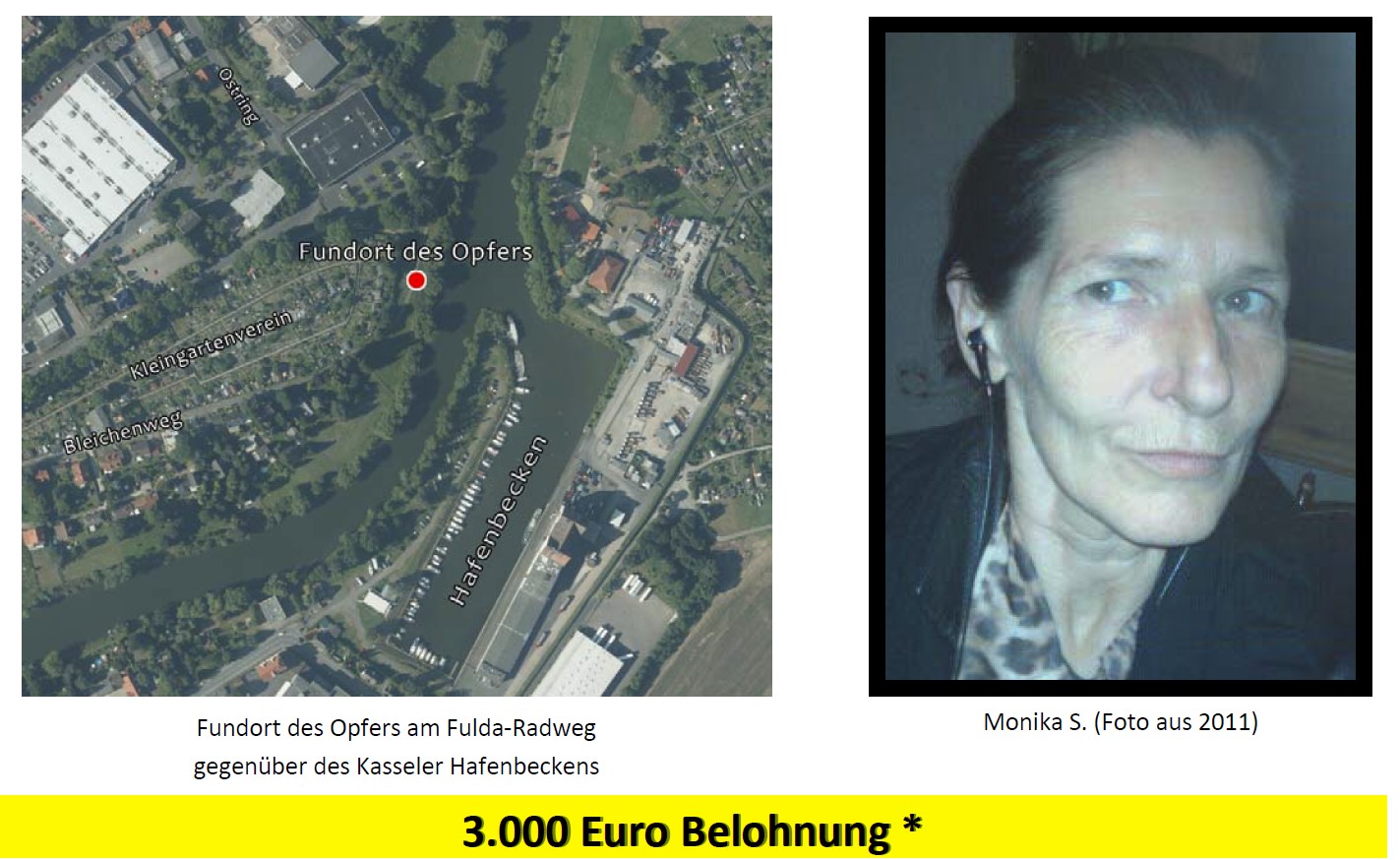 Die in diesem Fall ermittelnde Kasseler Kripobeamtin des Kommissariats K 11, Kriminalhauptkommissarin Adele Kalwa, wird bei Rudi Cerne in der Sendung sein, dort den Fall vorstellen sowie vom Stand der Ermittlungen berichten. Monika S. war am 6. Mai 2015 tot am Fulda-Radweg im Kasseler Stadtteil Wesertor von Spaziergängern gefunden worden (-wir berichteten-). Sie lag am Rande eines Gebüschs und war mit Gartenabfällen bedeckt gewesen. Wie lange die Tote dort lag, konnte bei den bisherigen Ermittlungen der eingerichteten Soko Hafen nicht genau bestimmt werden. Den Ermittlern zu Folge hielt sich Monika S. vor ihrem Tot häufig in der Obdachlosenszene auf. Nach dem derzeitigen Ermittlungsstand war sie zuletzt am 28. März lebend gesehen worden.