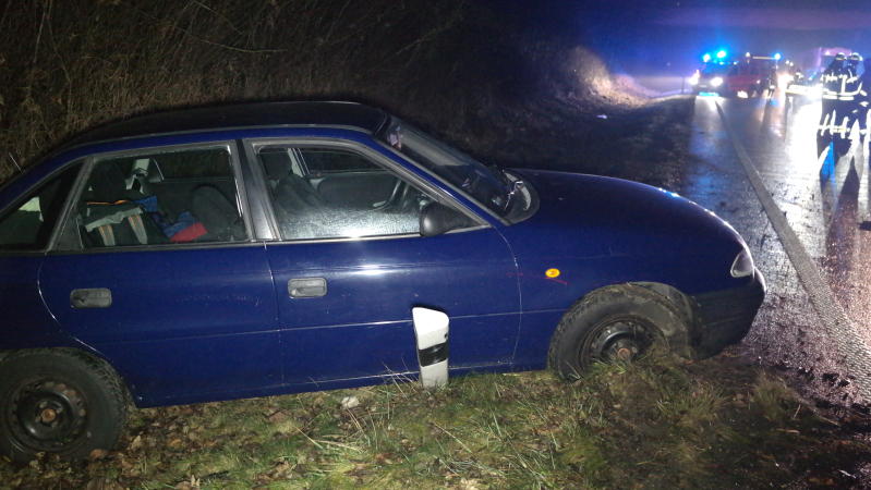 Ein Fahrer verlor die Kontrolle über seinen Wagen, kam nach rechts von der Fahrbahn ab, schleuderte in den Graben, drehte sich, überschlug sich jedoch nicht. Der Fahrer wurde bei dem Unfall leicht verletzt und konnte nach einer ärztlichen Versorgung an der Unfallstelle wieder entlassen werden. Neben Polizei und Rettungsdienst war die Feuerwehr Breuna mit rund 25 Einsatzkräften vor Ort.