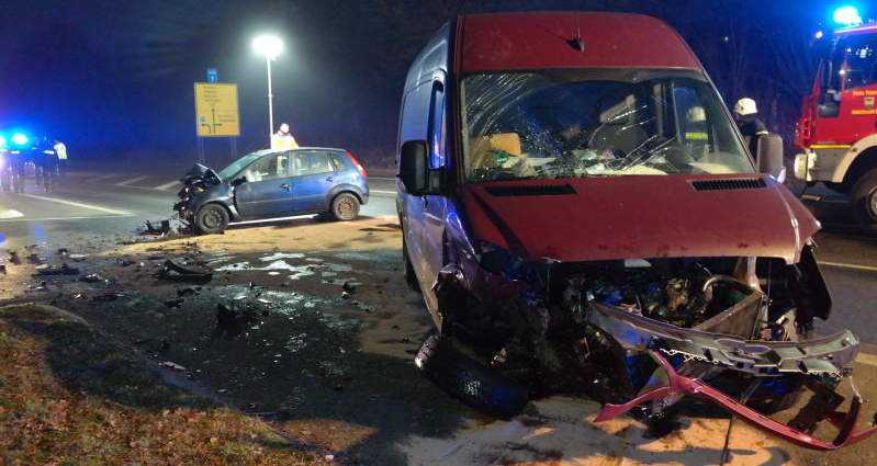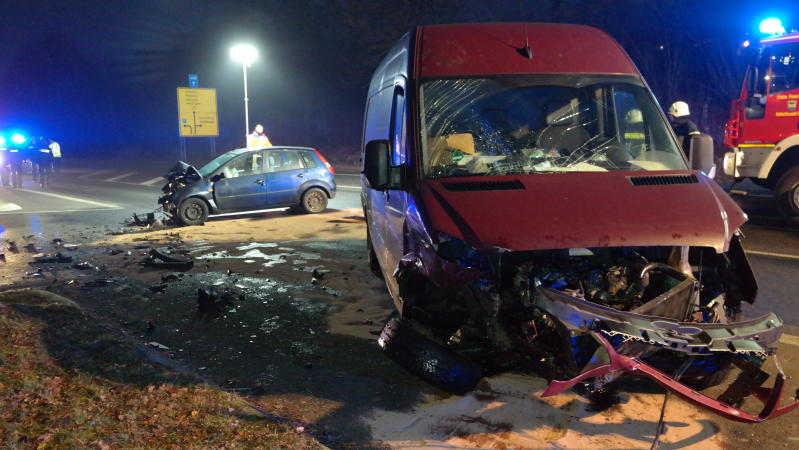 Dabei übersah er aus bislang unbekannten Gründen einen entgegenkommenden Ford Fiesta, an dessen Steuer ein 22-Jähriger aus Wolfhagen saß. Die beiden Wagen waren daraufhin auf der Bundesstraße zusammengekracht. Beide Fahrer zogen sich dabei offenbar schwerste Verletzungen zu. Sie wurden anschließend mit Rettungswagen in Kasseler Krankenhäuser gebracht. Der Transporter und der Pkw waren durch den Unfall erheblich beschädigt worden und mussten abgeschleppt werden. Den Gesamtsachschaden beziffern die Beamten auf rund 10.000,- Euro. Die Bundesstraße 251 musste während der Rettungsarbeiten kurzzeitig voll gesperrt werden. Nach kurzer Zeit konnte der Verkehr beider Fahrtrichtungen abwechselnd einspurig an der Unfallstelle vorbeigeführt werden. Es kam zu Verkehrsbehinderungen. Neben Polizei und Rettungsdienst war auch die Feuerwehr auch Habichtswald im Einsatz. Sie nahmen ausgelaufende Betriebsstoffe auf und leuchteten die Unfallstelle ab. Gegen 8:30 Uhr waren die Bergungsarbeiten abgeschlossen und die B 251 wieder in beiden Richtungen frei befahrbar.