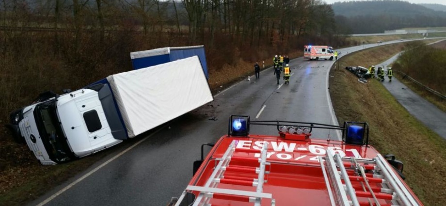 Waldkappel – Zu einem schweren Verkehrsunfall kam es am Donnerstagmittag gegen 13.00 Uhr auf der B7 zwischen Waldkappel und Bischhausen. Ein 21-jähriger Mann aus Eschwege kam mit seinem Fahrzeug aus bisher noch nicht geklärter Ursache in den Gegenverkehr und krachte frontal in einen entgegenkommenden LKW.