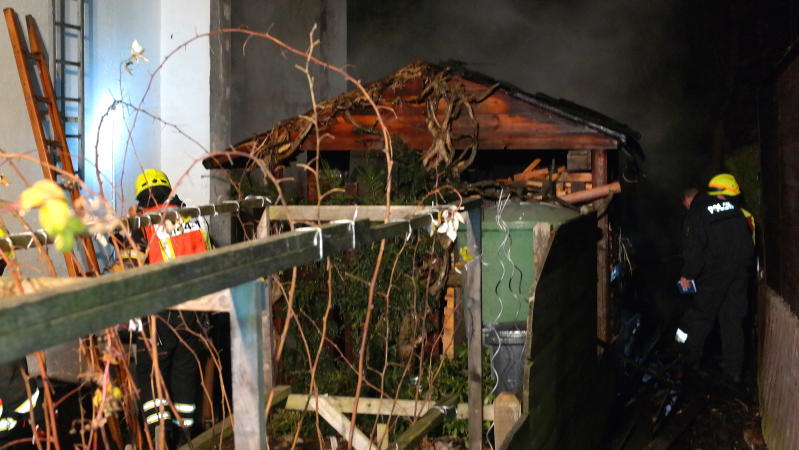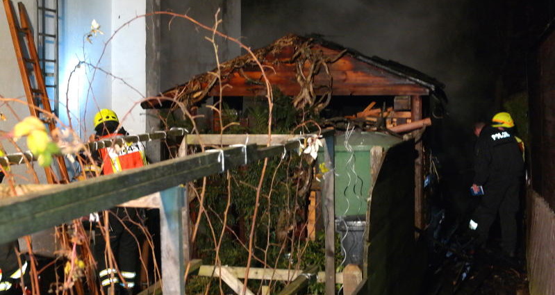 Beim Eintreffen der Feuerwehr Vellmar stand eine Gartenhütte im Vollbrand und die Flammen griffen auf das angrenzende Wohnhaus über. Unter Einsatz einer Drehleiter konnte der Brand sehr schnell unter Kontrolle gebracht werden. Anwohner hatten das Feuer entdeckt und die Feuerwehr alarmiert. Passanten die vergeblich versucht hatten die Hausbewohner zu informieren erhielten jedoch auf Klingeln und Klopfen keine Antwort. In der Not schlugen sie die aus Glas bestehende Haustür ein, um nach Personen zu suchen. Zum Glück befanden sich die Bewohner jedoch nicht im Haus. Beim gewaltsamen Öffnen der Tür wurde eine Person verletzt, beim Brand selbst jedoch nicht. Zum Einsatz kam die Feuerwehr Vellmar mit insgesamt 27 Einsatzkräften. Wie es zu dem Brand kommen konnte und ob möglicherweise ein Feuerwerkskörper dafür in Frage kommt, muss nun die Polizei klären. Über die Höhe des Sachschadens gab es aktuell noch keine Informationen.