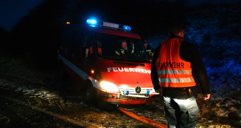Wenige Meter vor dem Abzweig nach Viesebeck verlor der Fahrer die Kontrolle über das Fahrzeug drehte sich und kam im Straßengraben zum stehen. Der Fahrer blieb unverletzt. Der Frontbereich der Fahrzeugs wurde erheblich beschädigt. Mit einem weiteren Feuerwehrfahrzeug wurde der MTW aus dem Graben gezogen und konnte dann eigenständig weiter fahren.