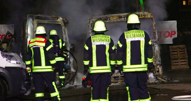 Wiesbaden – In der Nacht zum Sonntag brannten in Biebrich zwei LKW auf dem Gelände einer Werkstatt im Gewerbegebiet.us. Zwei LKW brannten komplett aus, ein weiterer wurde in Mitleidenschaft gezogen, Personen kamen nicht zu Schaden.