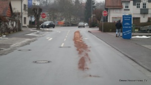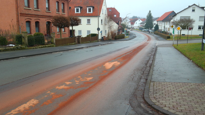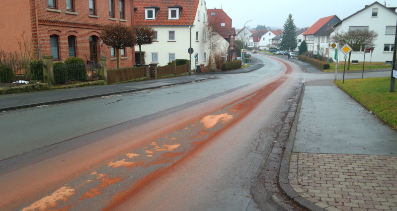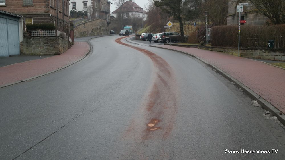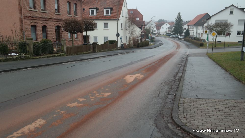 Naumburg/Bründersen – Am Freitagvormittag beschäftigte eine rund 7,5 km lange Ölspur die Feuerwehr sowie die Straßenmeisterei. Am stärksten betroffen war wohl Naumburg. Hier waren neben der Hauptstraße auch die Altstadt stark verunreinigt.