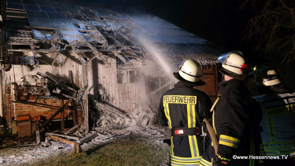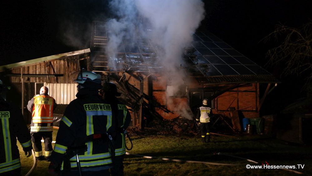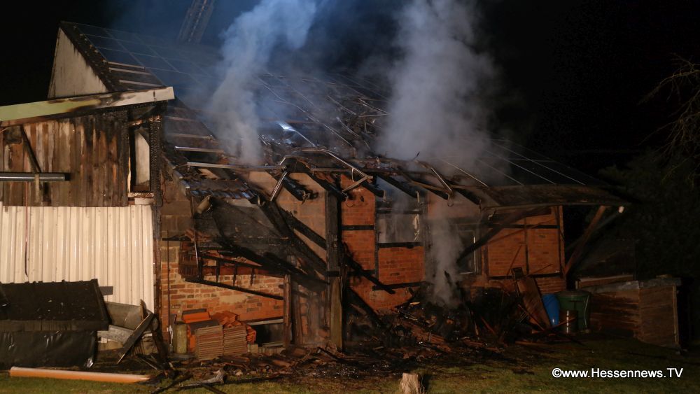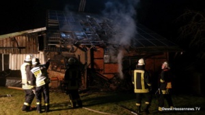 Dissen – Am Freitagabend kam es zu einem Brand im Gudensberger Ortsteil Dissen. Gegen 20.30 Uhr brach ein Feuer in einer Scheune aus. Beim Eintreffen der ersten Einsatzkräfte stand der hintere Teil der Scheune sowie der Dachstuhl bereits in Flammen.