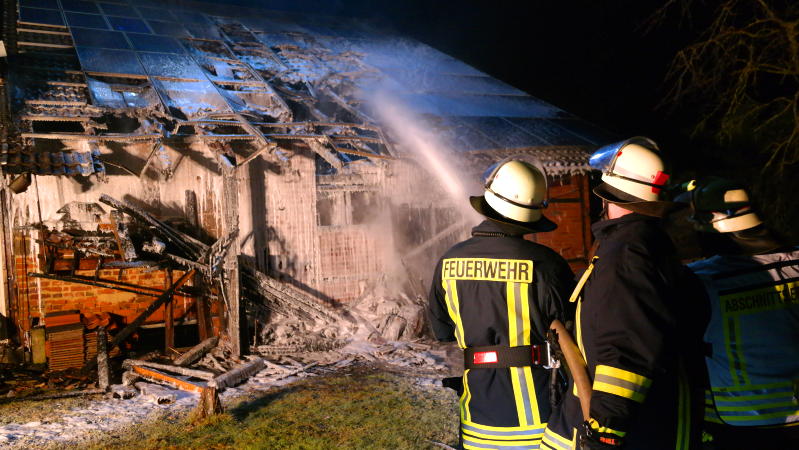 Das Feuer konnten die rund 70 Einsatzkräfte schnell unter die Kontrolle bringen. Ein Schlepper mit Anhänger der noch in der Scheune stand konnte gerettet werden. Die auf dem Dach installierte Photovoltaikanlage wurde fast vollständig zerstört. Um die letzten Brandstellen löschen zu können, wurde ein Schaumteppich über die Brandstelle gelegt. Der Eigentümer wurde in ein Krankenhaus eingeliefert, wie schwer er verletzt wurde ist derzeit unbekannt. Im Einsatz war die Feuerwehr aus Gudensberg, Dissen, Obervorschütz und Deute.