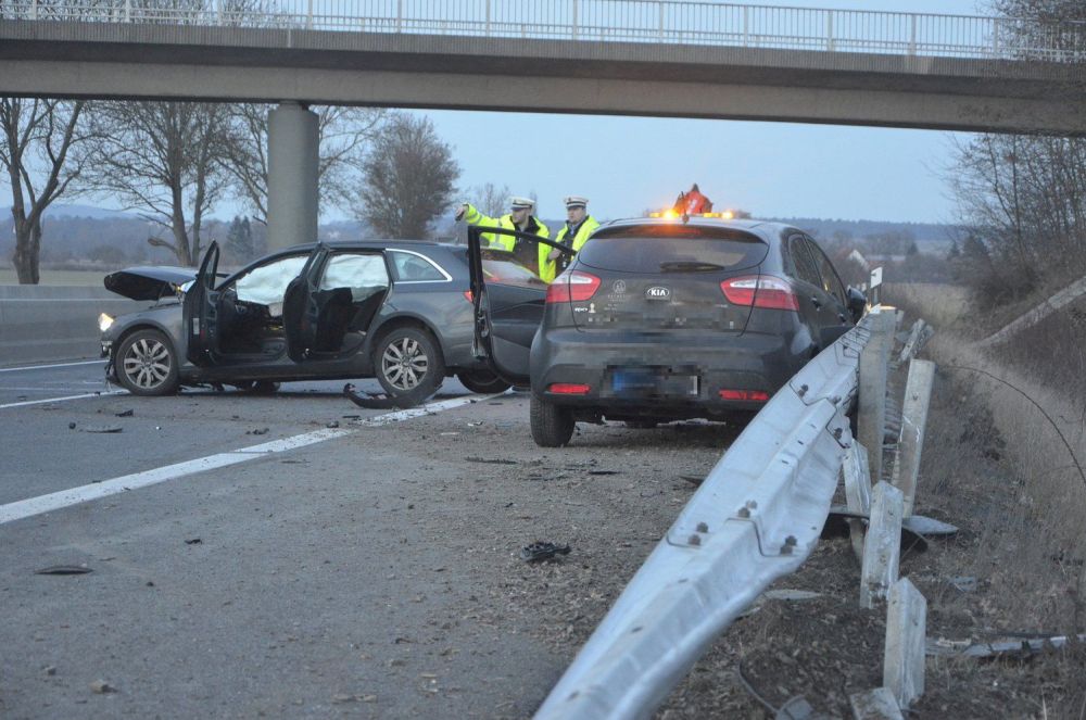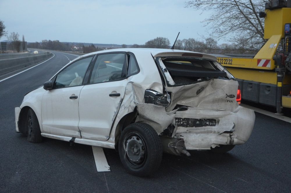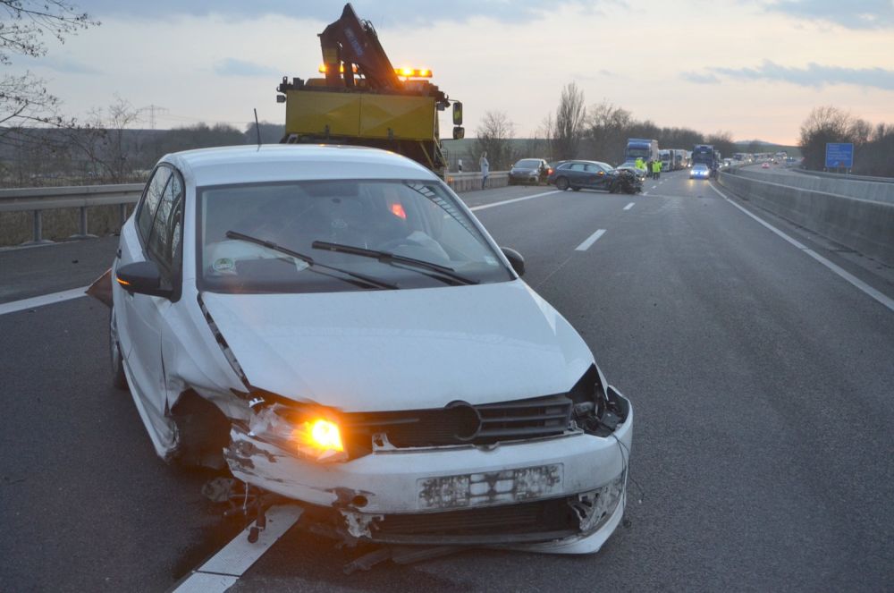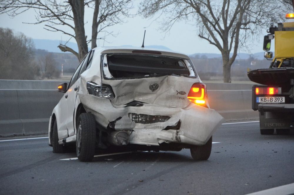 Beim Fahrbahnwechseln übersah sie offensichtlich den nachfolgenden Pkw eines 25 jährigen Mannes aus Vechta. Dieser konnte einen Heckaufprall nicht mehr verhindern. Durch den Aufprall fuhr die Korbacherin erst links in die Betonwand, wurde von dieser abgewiesen und krachte in den vor ihr fahrenden Pkw der Kasselerin. Diese schleuderte genauso wie die vermeintliche Unfallauslöserin nach rechts gegen die Schutzplanken. Der junge Mann aus Vechta konnte auch einen Zusammenprall mit der Kasselerin nicht vermeiden. Alle drei Beteiligten zogen sich glücklicherweise nur leichte Verletzungen zu und wurden in umliegende Krankenhäuser gebracht. An allen drei Fahrzeugen entstand Totalschaden. Die Autobahn war in Fahrtrichtung Norden für rund eineinhalb Stunden voll gesperrt.