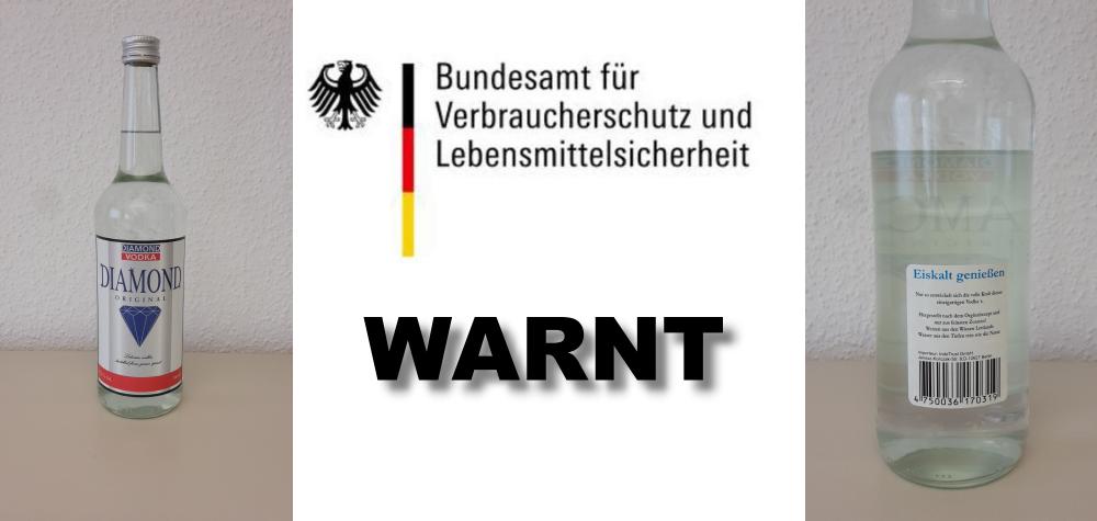 Das nordrhein-westfälische Verbraucherschutzministerium warnt vor dem Verzehr von gepanschtem „Diamond Vodka“. Untersuchungen im Auftrag der Bundesmonopolverwaltung kamen zu dem Ergebnis, dass die beanstandenden Alkoholika einen Gehalt von 15 Gramm Methanol pro Liter enthalten und damit den erlaubten