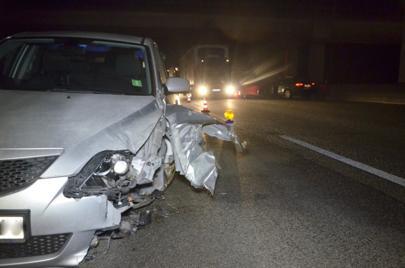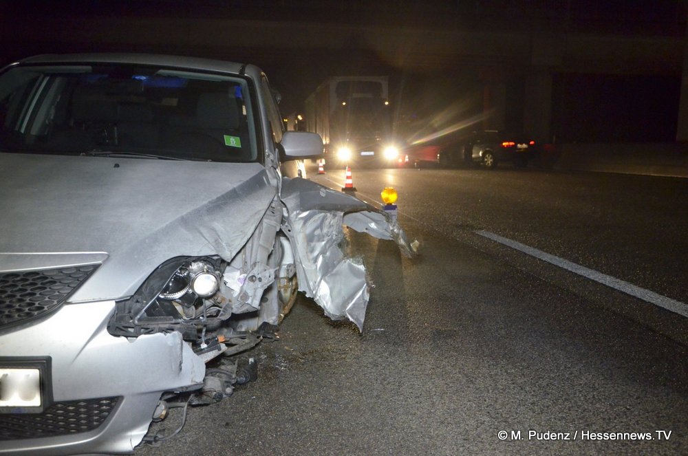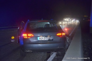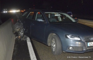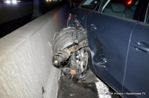 Nur wenige Stunden später kam es auf der A7 nur ein paar Kilometer weiter zu einem weiteren Verkehrsunfall. Hier blieb es bei Blechschäden. Aus bislang ungeklärten Umständen kollidierten ein Mazda und ein Audi derart miteinander, dass von dem Mazda das Vorderrad abriss und sich im hinteren Radkasten des Audi wieder fand. Durch den Zusammenprall drehte sich der 28 jährige Audifahrer und kam auf der linken von drei Fahrbahnen entgegengesetzt der Fahrtrichtung zum stillstand. Der 68 jährige Mazdafahrer kam indes auf der rechten Spur zum stehen. Damit war die Autobahn innerhalb weniger Stunden ein zweites mal voll gesperrt.