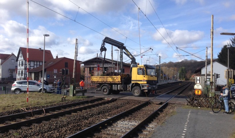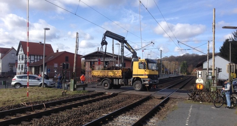 Lispenhausen (Kreis Hersfeld-Rotenburg) – Ein 50-Jähriger aus Rotenburg beschädigte am Dienstag egen 11.15 Uhr, am Bahnhof Lispenhausen, mit dem Lastenkran seines LKW, die Oberleitung. Personen wurden nicht verletzt. Die Bahnstrecke ist seither zwischen Bebra und Heinebach gesperrt.