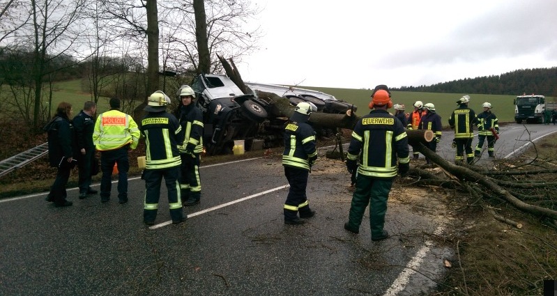 Durch die Wucht des Aufpralls brach der 50 cm dicke Stamm eines Baumes durch und kippte quer über die Straße, wobei er auch den Laster zwischen Fahrerhaus und Mulde unter sich begrub. Bei dem Unfall wurde der Fahrer verletzt und musste mit dem Rettungswagen in ein Krankenhaus gefahren werden. Die Feuerwehren aus Richelsdorf und Bosserode wurden zur Unfallstelle alarmiert um auslaufende Betriebsstoffe zu sichern und den dicken Baum von der Straße und dem Muldenkipper zu entfernen. Während der Rettungs- und Bergungsarbeiten musste die Landstraße für ca. zwei Stunden voll gesperrt werden. Aufgrund des geringen Verkehrs kam es zu geringem Stau. Der Verkehr wurde weiträumig umgeleitet. Über die Höhe des Sachschadens konnten noch keine Angaben gemacht werden.