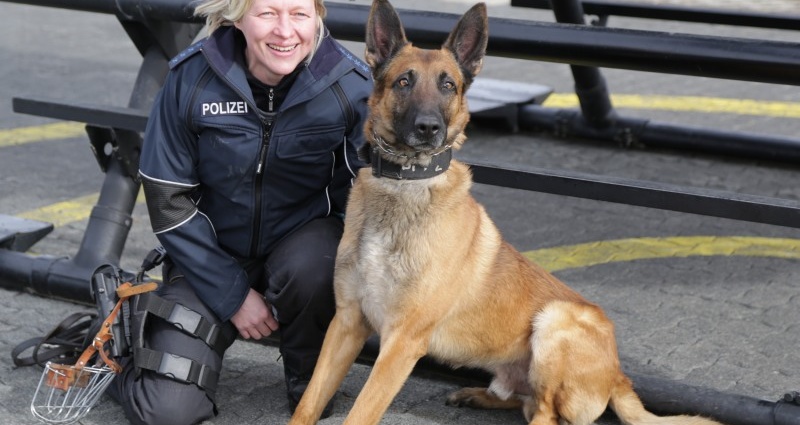 Besonders stressig für den Hund sei die Annäherung an den Hubschrauber bei sich drehenden Rotoren, sagte die Polizeihauptmeisterin. „Mein Rocky hat das aber gut gemeistert!“, so die 40-jährige Bundespolizistin weiter. Bei solchen Ausbildungen kommt es darauf an, dass der Hund totales Vertrauen zum Hundeführer hat. Rocky ist ein Malinois (sog. Belgischer Schäferhund) und gehört zur Diensthundegruppe der Bundespolizeiinspektion Kassel. Christina Decker aus Oberweser ist seit 1999 Diensthundeführerin und hat mit Rocky inzwischen den vierten Diensthund ausgebildet. Hintergrund zur Rasse Malinois Belgische Schäferhunde sind triebstarke, robuste Hunde mit guten Hütequalitäten sowie besonders ausgeprägten Wachhundeigenschaften. Speziell der Malinois wurde durch seine Beweglichkeit, seinen Arbeitswillen und seine Ausdauer, schnell zu einem der beliebtesten Dienst- und Sporthunde.