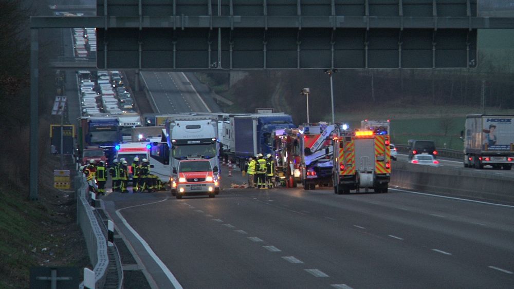 Kassel – Zu einem schweren Verkehrsunfall kam es am frühen Samstagmorgen gegen 05.40 Uhr auf der A7 zwischen Guxhagen und Kassel, etwa in Höhe der Abfahrt zur A44 in Richtung Dortmund. Nach ersten Informationen der Polizei befuhr ein Sattelzug die A7 im Steigungsbereich nur sehr langsam.