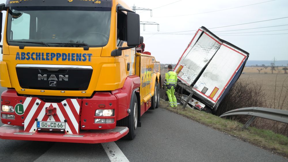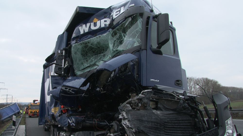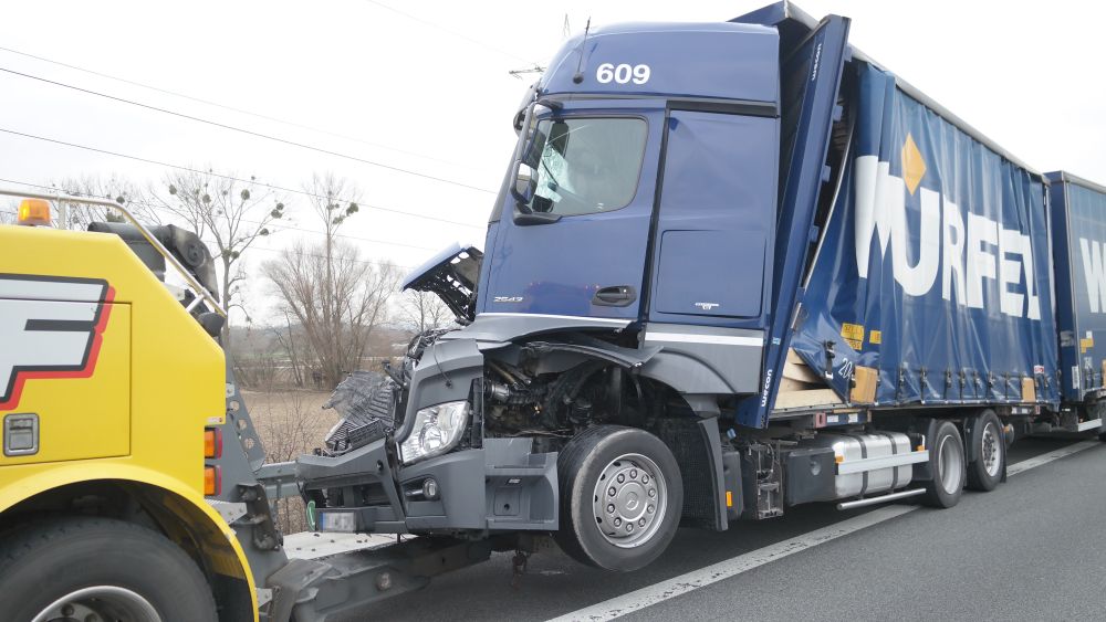 Aus noch ungeklärter Ursache stieß er auf dem Hauptfahrstreifen gegen den verkehrsbedingt vor ihm haltenden Sattelzug und kam anschließend quer zur Fahrtrichtung auf dem Haupt- und Mittelfahrstreifen zum Stehen. Durch die Wucht des Aufpralls wurde der aus Zwickau stammende Sattelzug auf den Standstreifen und in den Böschungsraum geschoben und der 44 Jahre alte Fahrer verletzt. Der ebenfalls verletzte Lkw-Fahrer und der 44-jährige Mann kamen mit einem Rettungswagen in ein Krankenhaus in Göttingen. Die Bergungsarbeiten dauerten bis 15 Uhr an.