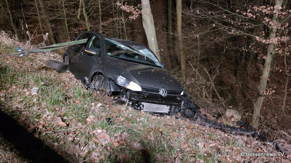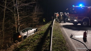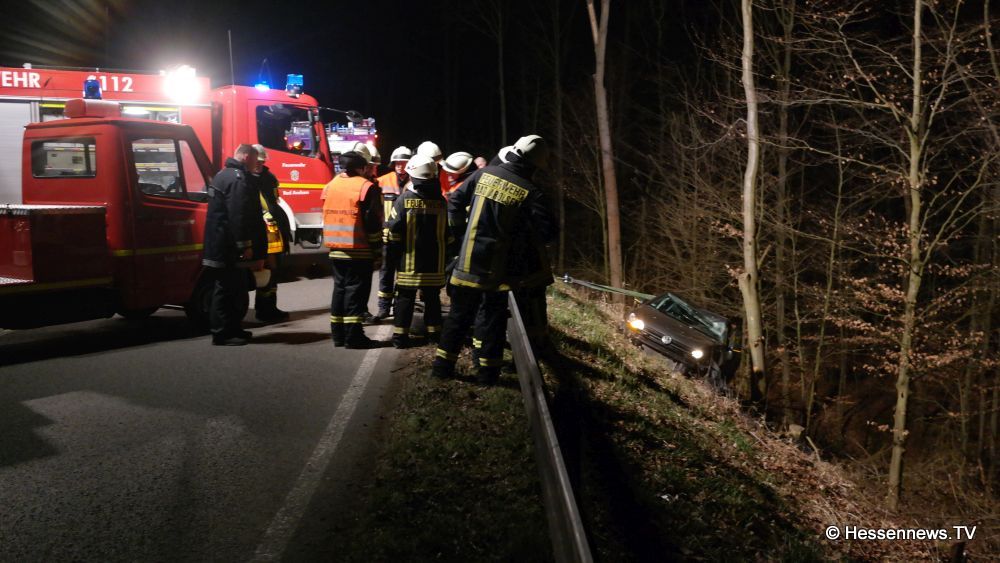 Kurz vor Gasterfeld vermutlich durch Unachtsamkeit verlor die Fahrerin in einer Linkskurve die Kontrolle über ihr Fahrzeug und kam von der Fahrbahn ab. Hierbei geriet die Frau hinter die Leitblanke und fuhr dort noch rund 90 Meter die Böschung entlang bis die Fahrt an einem abgesägten Baumstumpf endete. Durch winken konnte die Unfallfahrerin eine 39-jährige Frau aus Südhessen auf sich aufmerksam machen, die dann den Notruf tätigte. Zum Einsatz kam die Feuerwehr aus Bad Arolsen, die das Fahrzeug gegen weiteres Abrutschen sicherte. Die B450 musste während des gesamten Einsatzes komplett gesperrt werden. Nach Angaben der Polizei könnte der Unfall aus Unachtsamkeit entstanden sein. Der Sachschaden wird auf rund 25.000 Euro geschätzt.