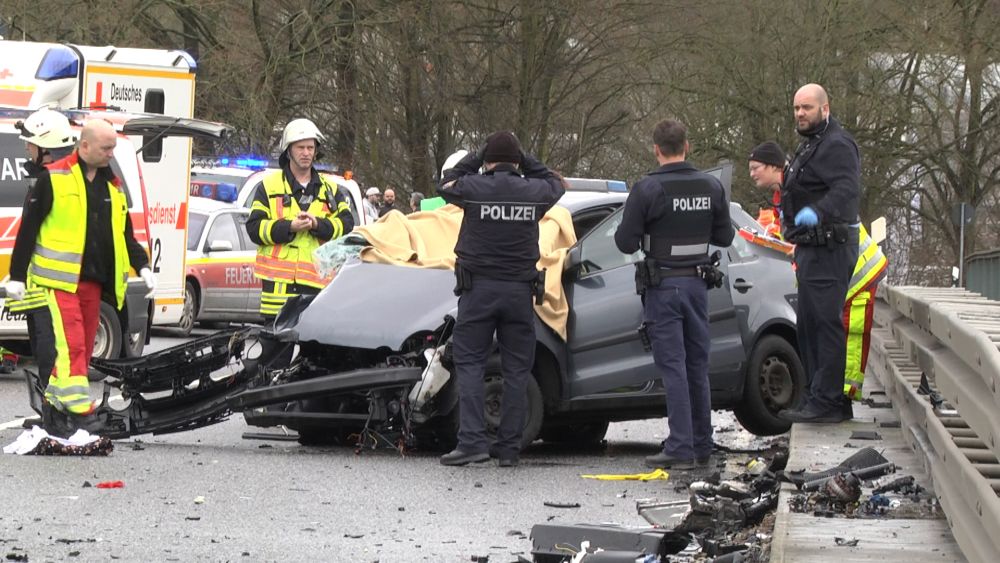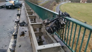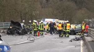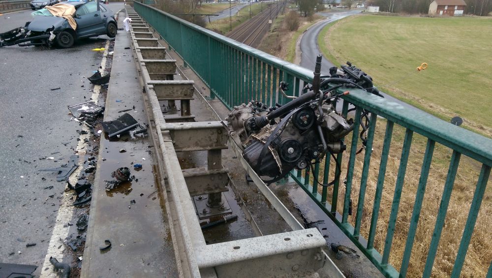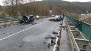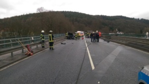 über ihr Fahrzeug, schleuderte und krachte mit der Beifahrerseite in den entgegenkommenden BMW eines Bundespolizeibeamten (22). Bei dem Unfall wurde der BMW Fahrer im Fahrzeug eingeklemmt und musste von der Feuerwehr aus Bad Hersfeld aus dem Fahrzeugwrack befreit werden. Ein Rettungswagen brachte den schwerverletzten Mann in ein Hersfelder Krankenhaus. Die Autofahrerin wurde durch die Wucht des Aufpralls so schwer verletzt, das sie noch an der Unfallstelle verstarb. Die Wucht des Aufpralls war so heftig, das der Motorblock aus dem VW gerissen wurde. Der Motorblock flog ca. 10 Meter durch die Luft, bevor er auf dem Brückengeländer hängen blieb. Warum die Autofahrerin auf die Gegenfahrbahn geriet, muss nun von einem Unfallsachverständigen geklärt werden. Im Bereich der Unfallstelle sind beide Fahrbahnen durch eine durchgehende Linie getrennt und in Richtung Bebra ist die Geschwindigkeit auf 60 km/h begrenzt. Während der Rettungs- und Bergungsarbeiten musste die Bundesstraße in beide Richtungen voll gesperrt werden. Wie Feuerwehr und Rettungsdienst an der Unfallstelle mitteilten, haben die Ersthelfer bei dem Unfall eine vorbildliche Arbeit geleistet. Der Verkehr würde örtlich umgeleitet. Über die Höhe des Sachschadens konnten noch keine Angaben gemacht werden, an beiden Fahrzeugen entstand wirtschaftlicher Totalschaden.