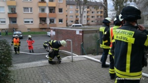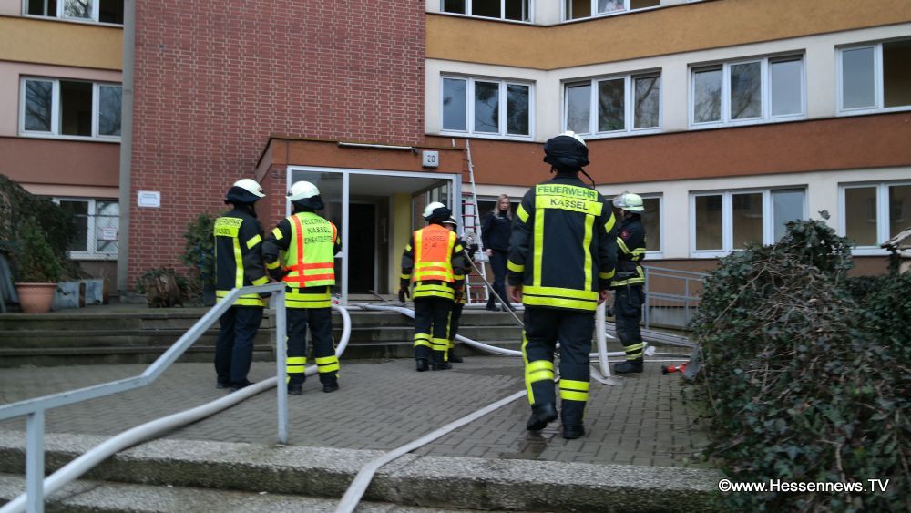 Mit Hilferufen macht sie auf sich aufmerksam und konnte von der Feuerwehr mit einer tragbaren Leiter gerettet werden. Nach einer ärztlichen Erstversorgung wurde die Person mit Verdacht auf eine Rauchgasvergiftung in ein Krankenhaus eingeliefert. Zwei weitere Personen wurden ambulant behandelt. Hier konnte sich der Verdacht auf eine Rauchgasvergiftung nicht bestätigen. Nach rund 90 Minuten war der Einsatz beendet. Zum Einsatz kam die Berufsfeuerwehr Kassel und die FF-Wolfsanger mit insgesamt 23 Einsatzkräften. Neben der Polizei waren auch vier Rettungskräfte im Einsatz.