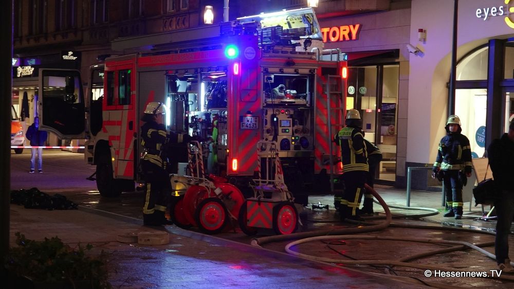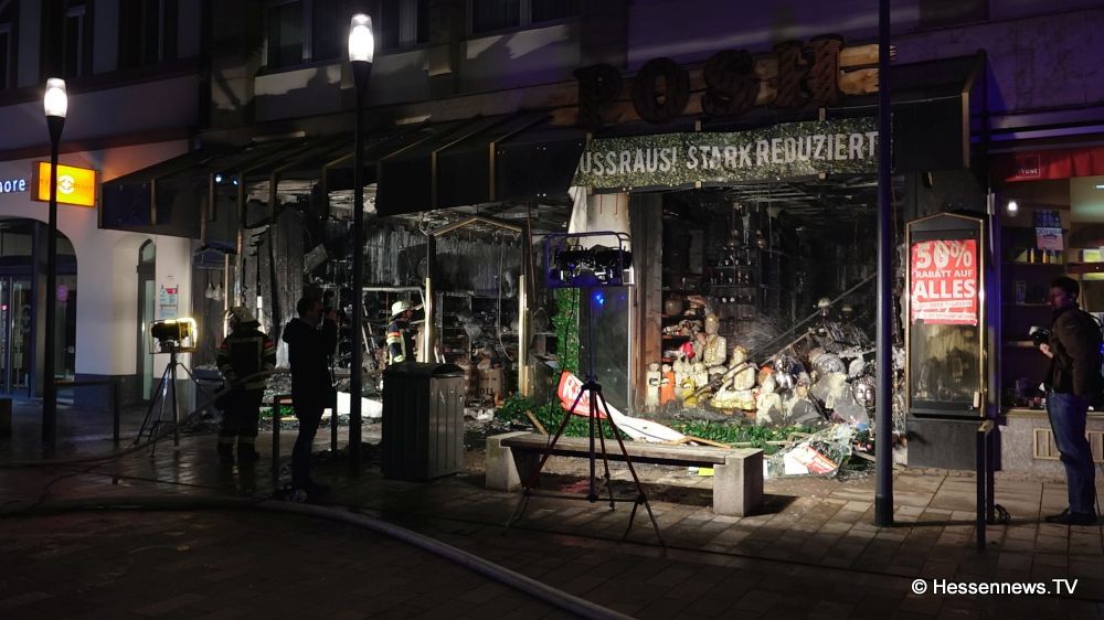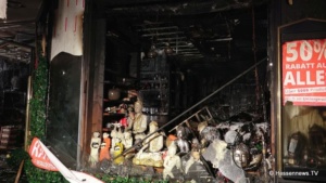 Im Erdgeschoss brannte ein Deko-Outlet-Shop. Durch das schnelle Eingreifen der Feuerwehr, konnte verhindert werden das die Flammen auf weitere Geschäfte übergriffen. Zunächst ging ein Atemschutztrupp zur Personensuche vor, welche aber zum Glück keine Personen auffanden. Die Bewohner des Hauses waren bereits aus ihren Wohnungen auf die Straße geflüchtet und wurden nicht weiter verletzt. Eine 19- und eine 21-jährige Passantin, die nach hilflosen Menschen suchen wollten, wurden durch das Einatmen von Rauchgasen leicht verletzt. Sie erlitten eine leichte Rauchvergiftung konnten auch nach einer ambulanten Behandlung wieder entlassen werden. Der Brandrauch breitete sich weiterhin auf das Gebäude aus, so dass ein angrenzender Tabakwarenladen, eine darüber liegende Arztpraxis, sowie ein Friseursalon belüftet werden mussten. Während der Einsatzmaßnahmen wurde die Rheinstraße teilweise für eine Stunde voll gesperrt und der Verkehr umgeleitet. Nach ersten Schätzungen beläuft sich der Gebäudeschaden auf etwa 300.000 Euro. Wie es zu dem Brand kommen konnte ich derzeit noch unklar. Die Polizei hat die Ermittlungen aufgenommen.
