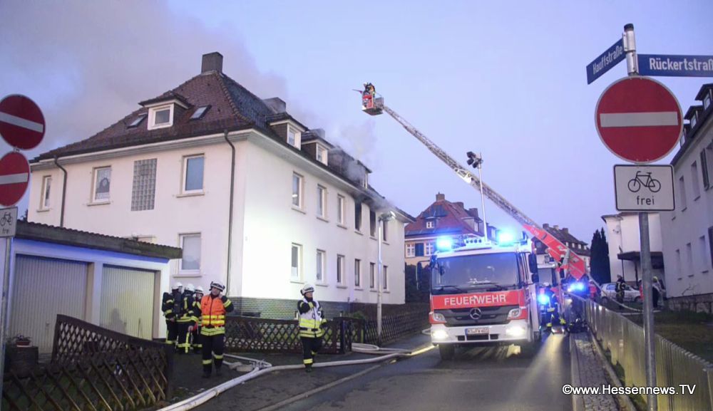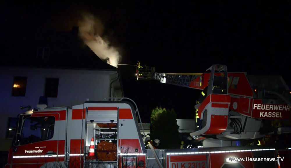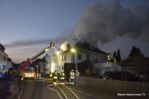 Kassel – Zu einem Wohnhausbrand kam es am frühen Sonntagmorgen gegen 5.35 Uhr in der Hauffstrasse in Kassel. Beim Eintreffen der Einsatzkräfte stand der Dachstuhl der Doppelhaushälfte bereits im Vollbrand. Die Feuerwehr drang sofort in das Gebäude vor, da bekannt war das sich noch eine Person im Haus befindet.