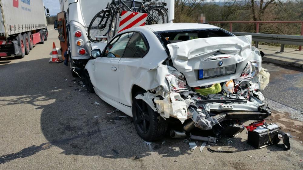 Kassel – Erneut kam es gegen 13.00 Uhr auf der Autobahn 44 rund 600 Meter vor der Baustelle an der Bergshäuser Brücke zu einem schweren Verkehrsunfall. Fahrzeuge mussten auf Grund eines Rückstaus anhalten. Die 63-jährige Fahrerin eines 1er BMW erkannte die Situation offensichtlich viel zu spät und fuhr mit voller Wucht in das Heck eines Wohnmobils.