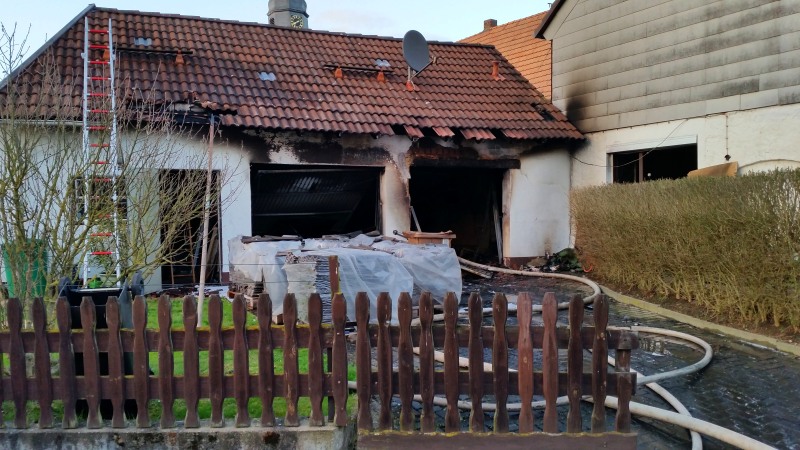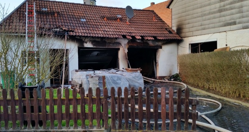 Trendelburg – Am frühen Montagabend geriet in Deisel eine Garage in Brand. Das Feuer griff auf ein Nebengebäude über. Durch den Brand wurde die Garage komplett zerstört, das Nebengebäude ist nicht mehr bewohnbar.